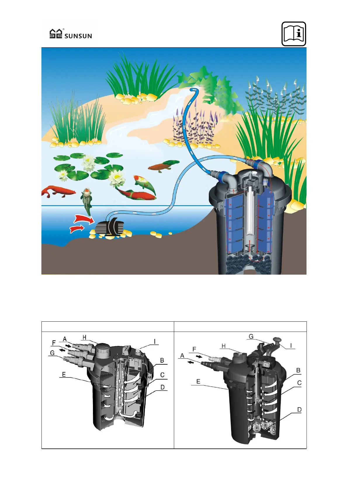 The pressure filter with the integrated UV lamp is a sealed filter system for biological and mechanical
