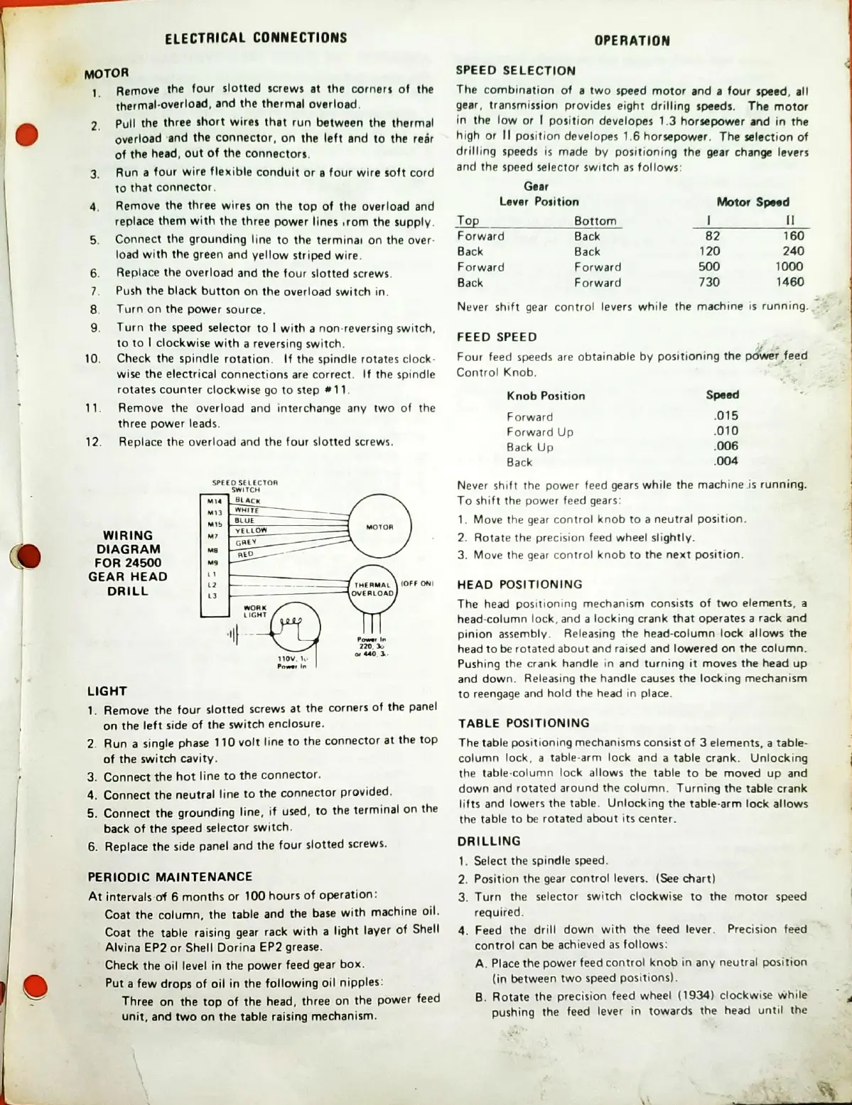 with the feed lever. Precision feed