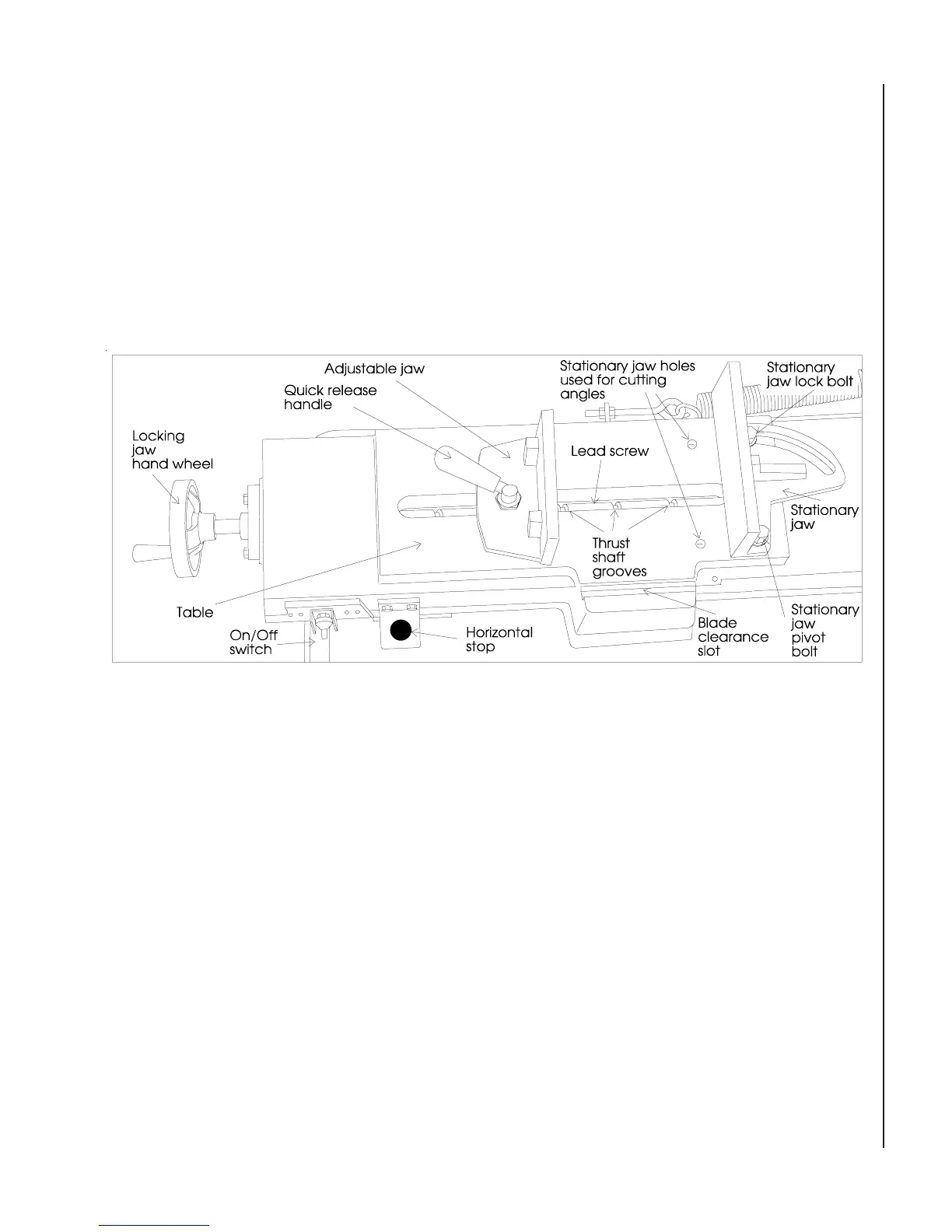 stationary jaw to hold it securely for cutting. The locking