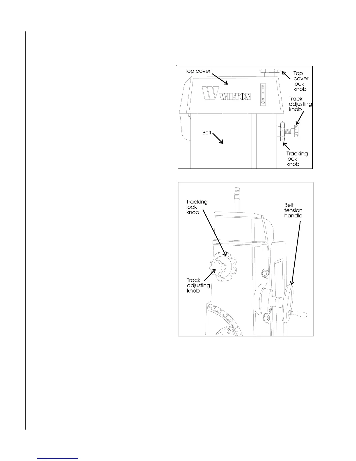Figure 7: Belt adjustment components (Note top cover