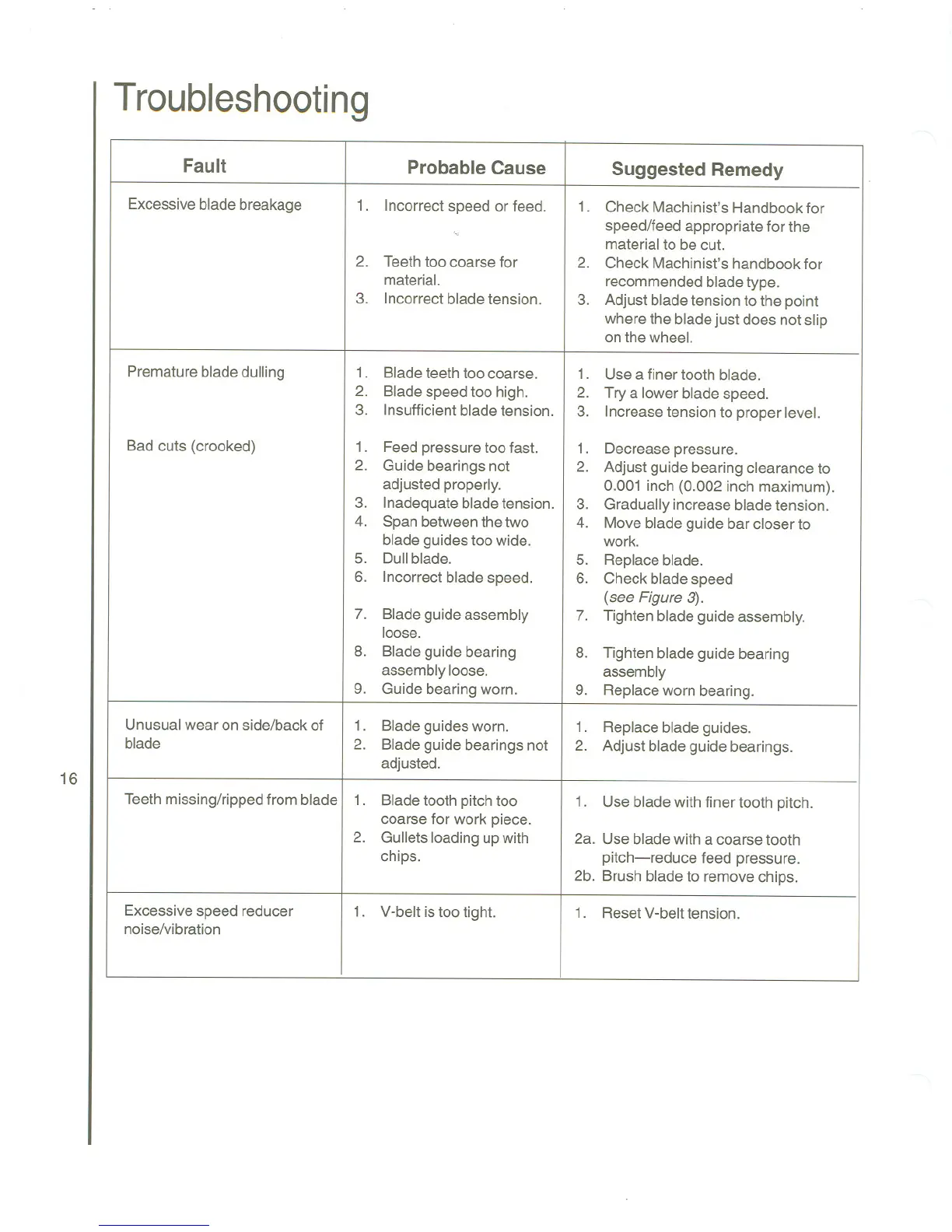 Incorrect bladetension. 3.