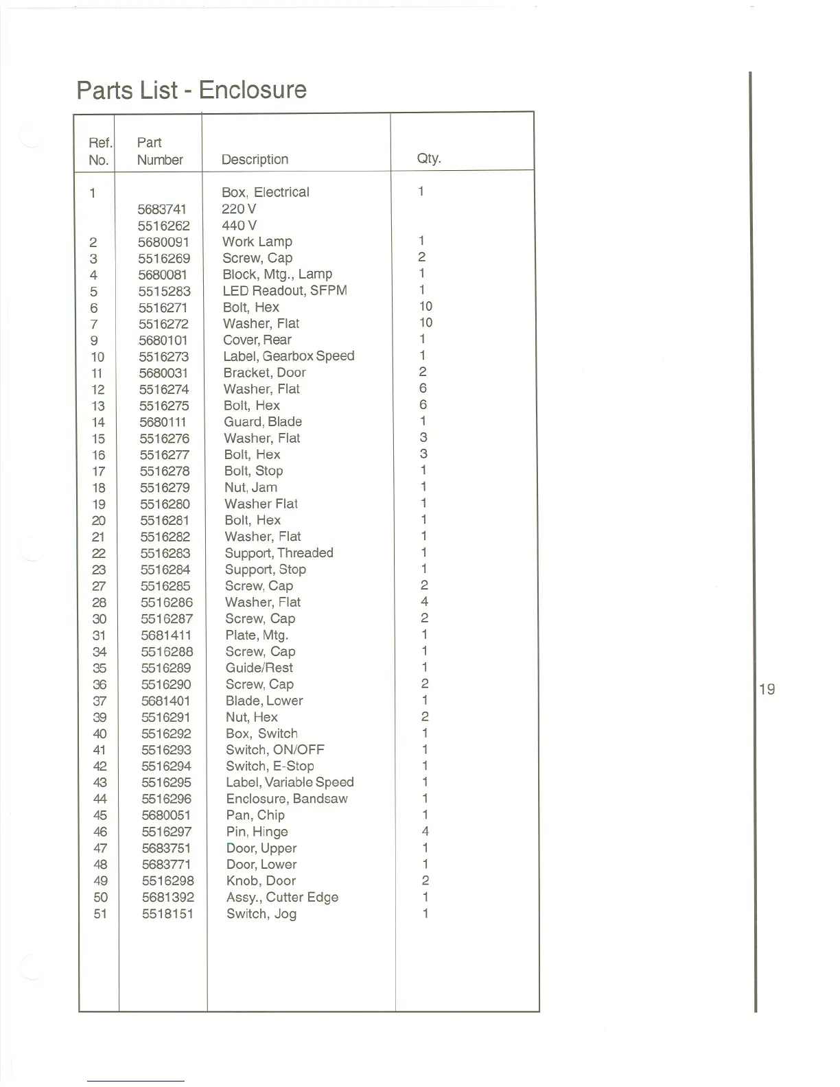Wilton 8020 - Parts List - Enclosure