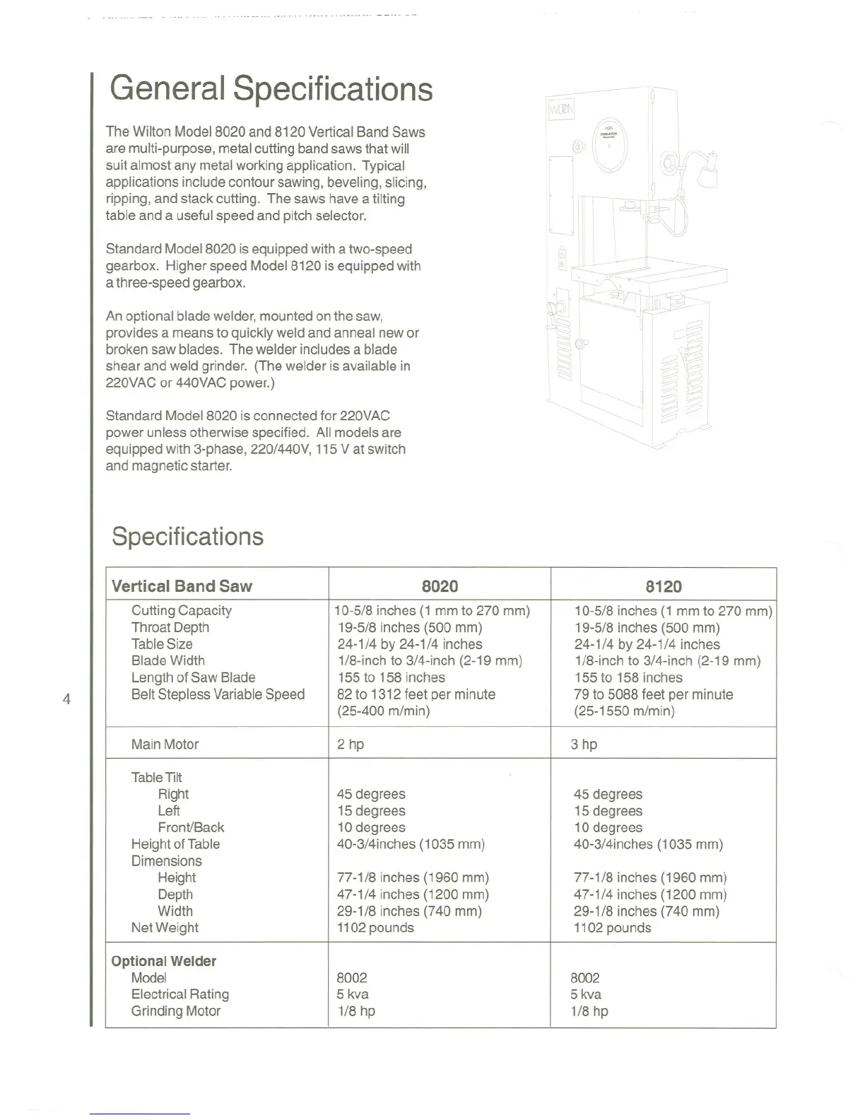 The Wilton Model 8020 and 8120 Vertical Band Saws