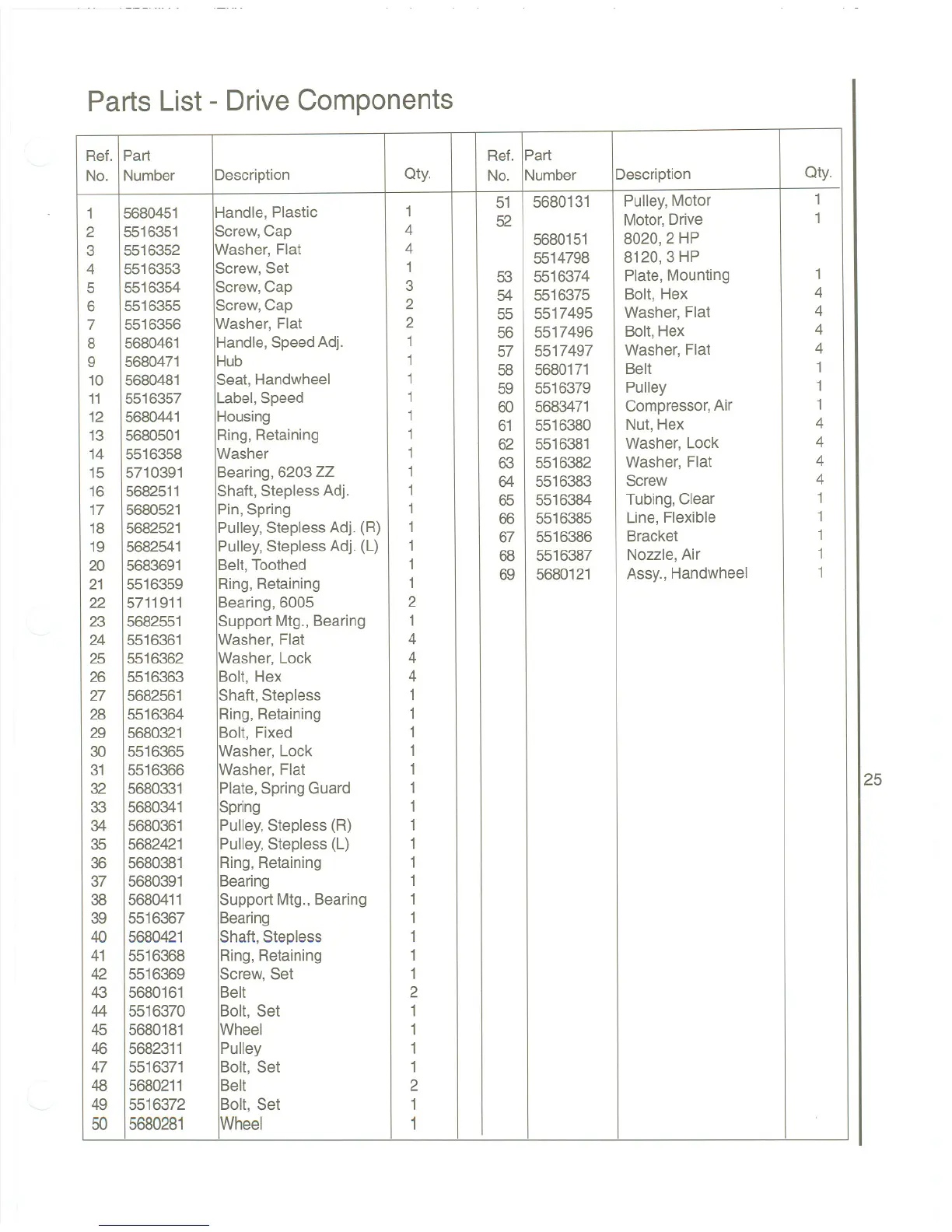 Parts List- Drive Components