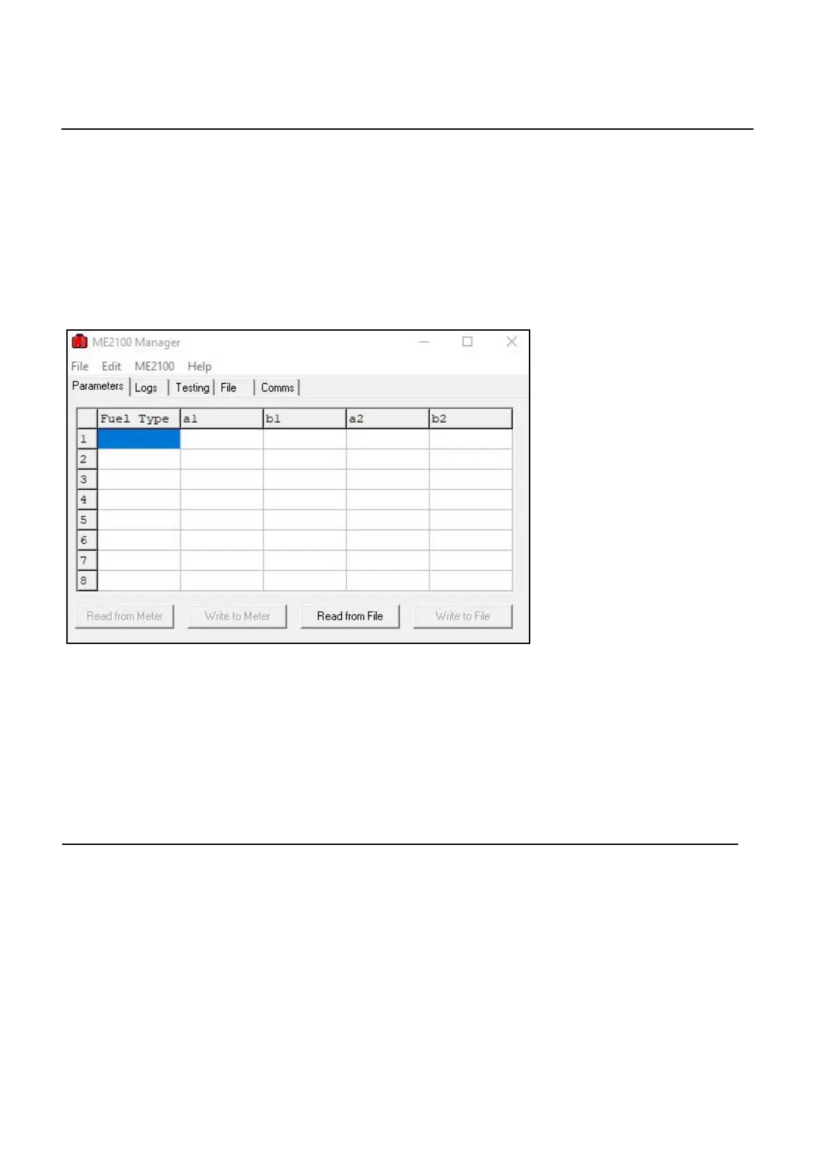 6.1 To download data and fuel parameters to ME2100 Manager: