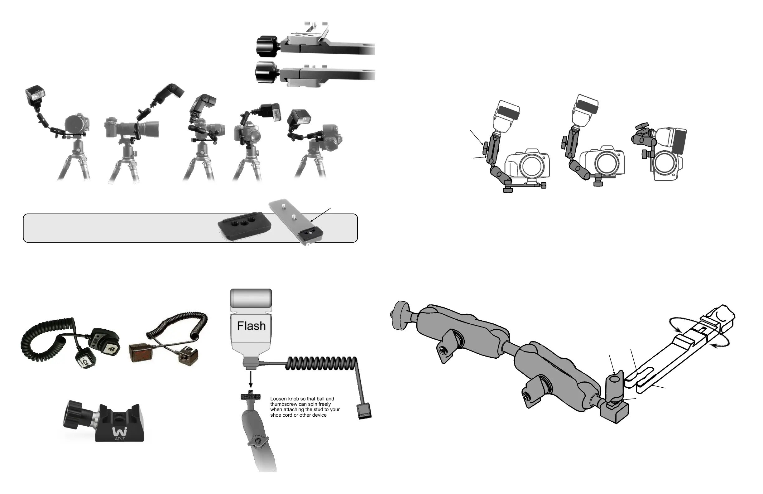 such as the Wimberley AP-7. The flash cord connects your flash unit to the camera body electrically. We do not sell flash cords.