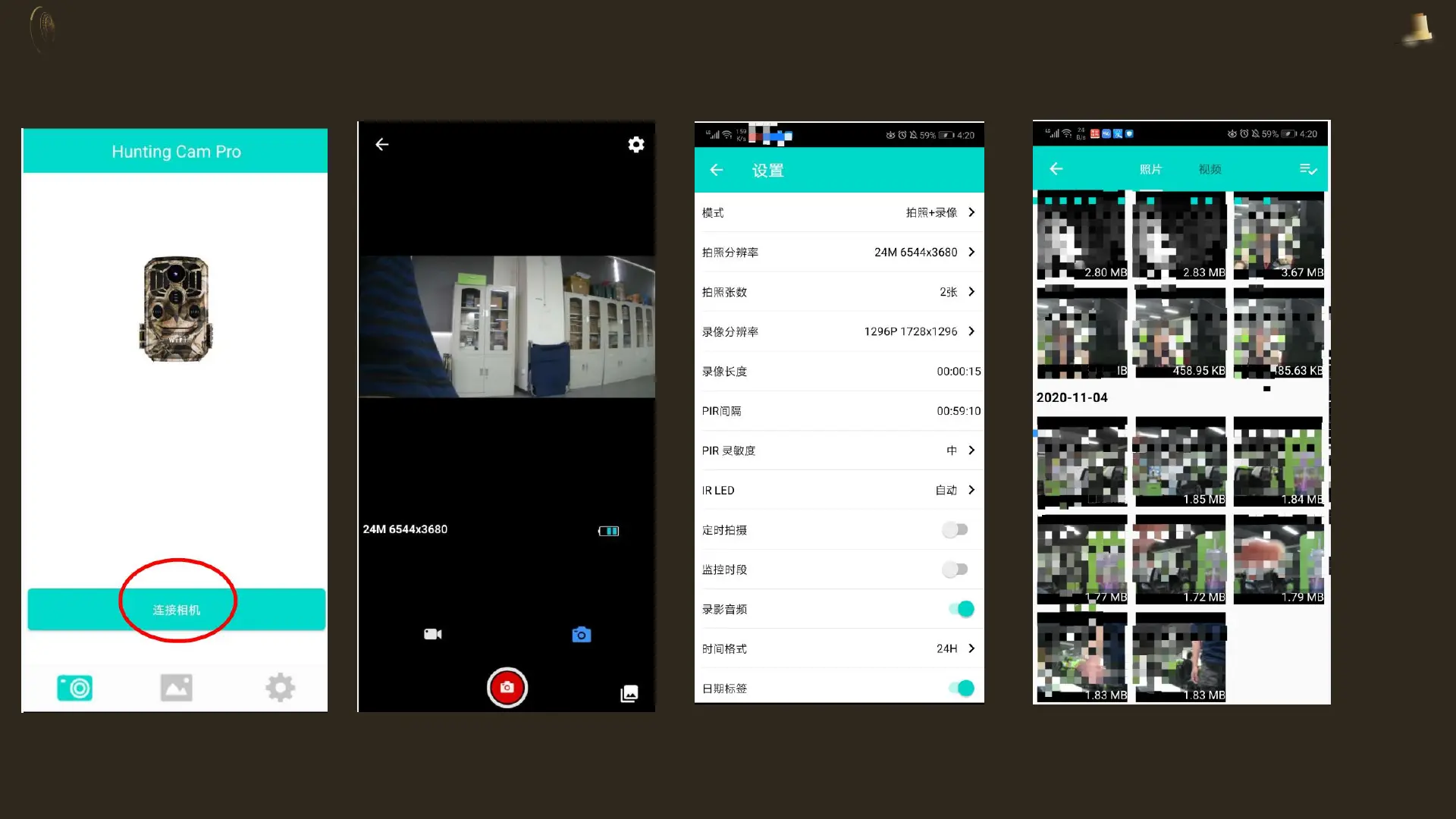 • 4.Open the mobile APP (Hunting Cam Pro), click "Connect Camera", you can view the camera's records in