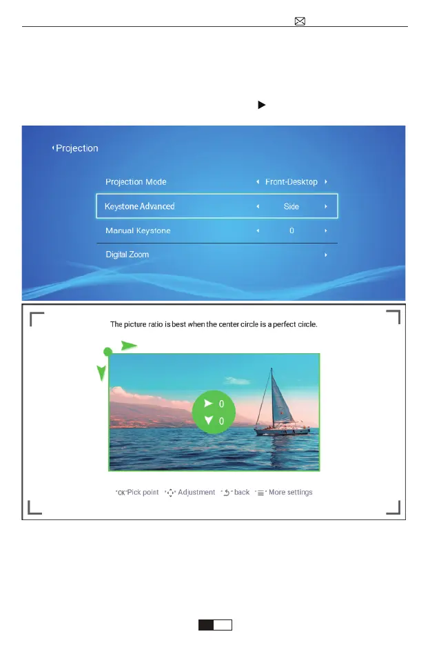 Keystone(corrección trapezoidal de 4 puntos )" según sus necesidades: valor