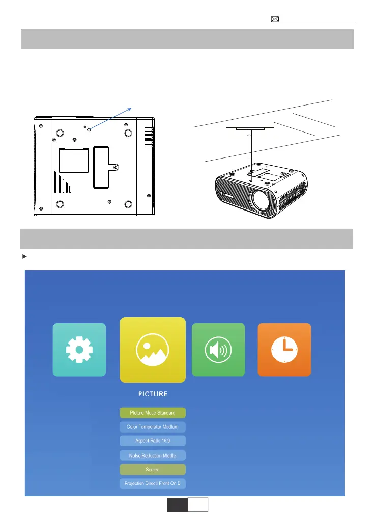 ①パッケージには用意してあるネジでプロジェクターの底部のネジ穴に取り付けて、より良い