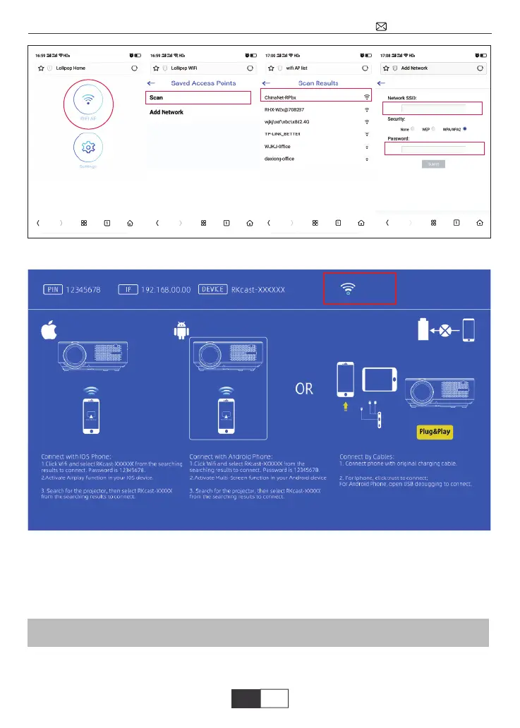 5.Activate Multi-Screen function in your Android device to search for the projector, then