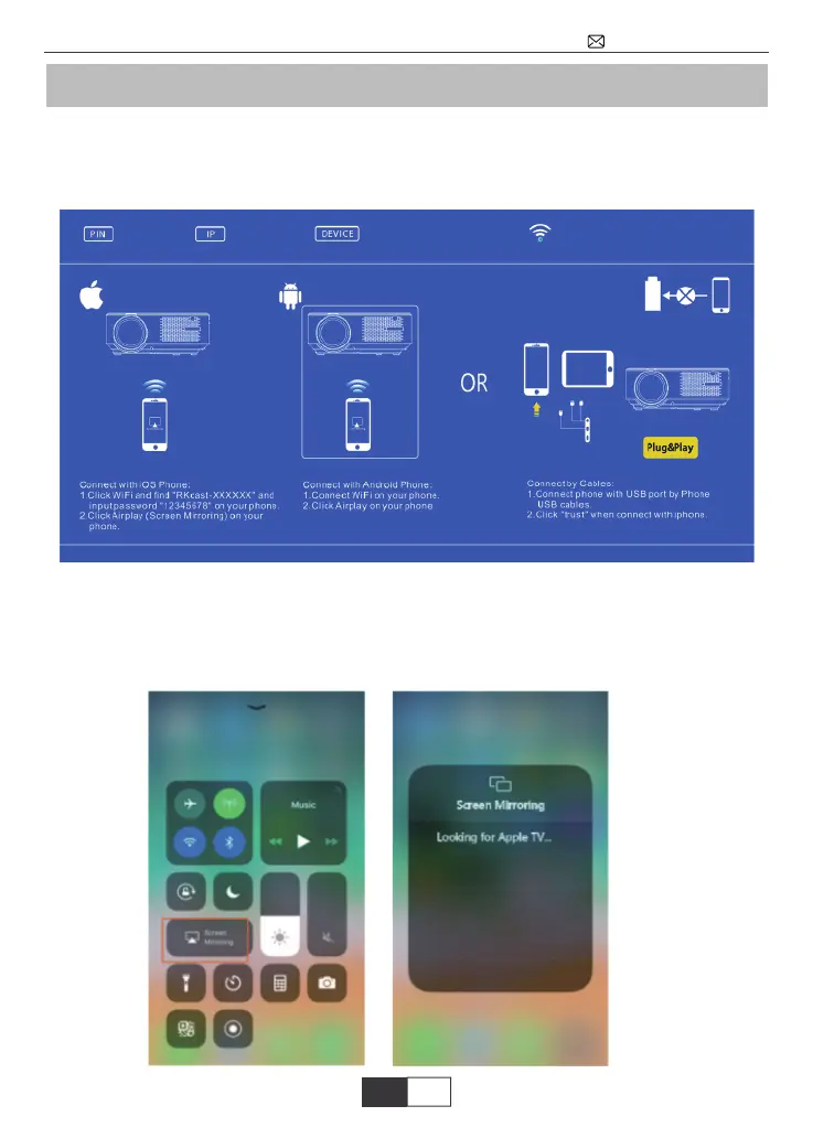 Aller dans l’interface de Screen Mirroring du projecteur pour le système iOS. Voir ci-des-