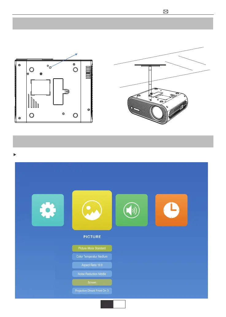 Im Boden des Projektors befindet sich ein Loch für die Deckenmontage.