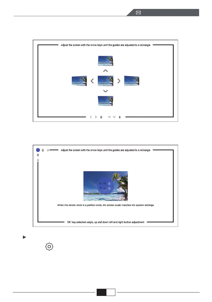 (2)4-corner keystone: adjust the screen with the arrow keys until the guides are
