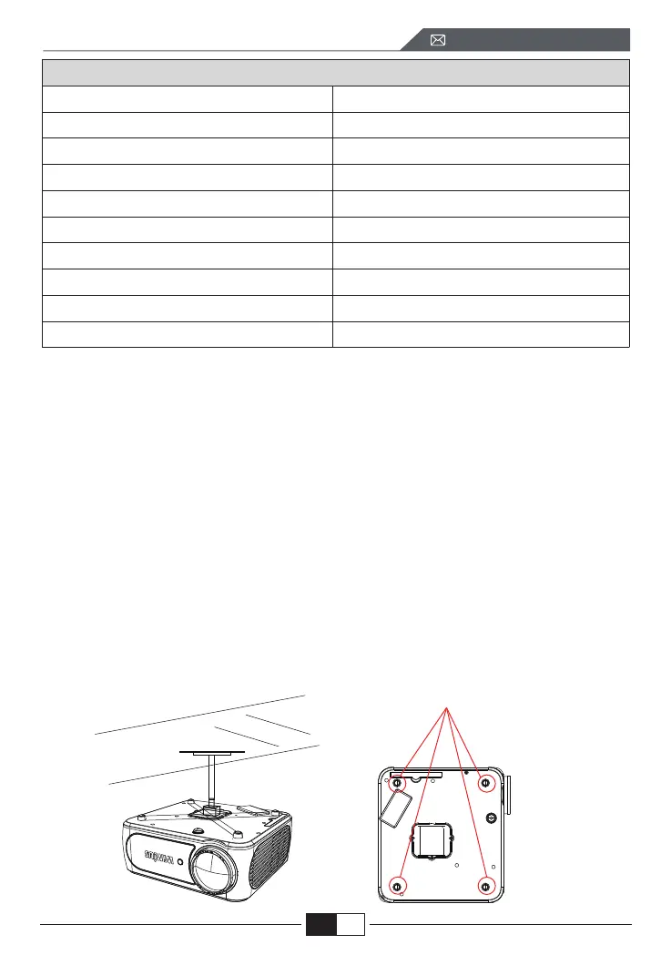 2.For Ceiling mount, there are 4 holes at the bottom of the projector (M4*10mm).