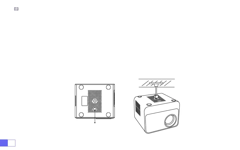 2. Para el soporte de techo, hay 1 oricio en la parte inferior del proyector. Voltee el proyector, luego podrá