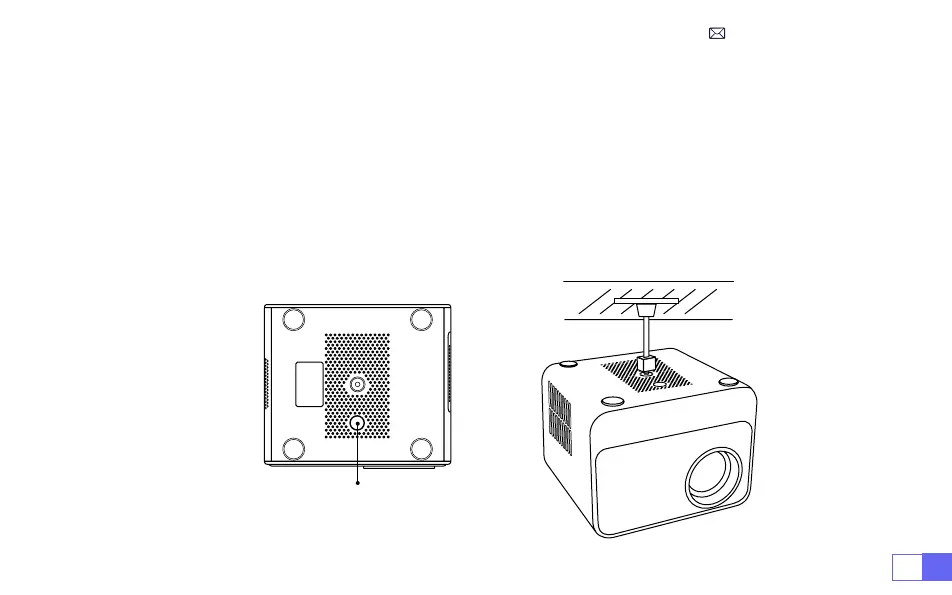 2. Pour le montage au plafond, il y a un trou au bas du projecteur. Veuillez retourner le projecteur, vous