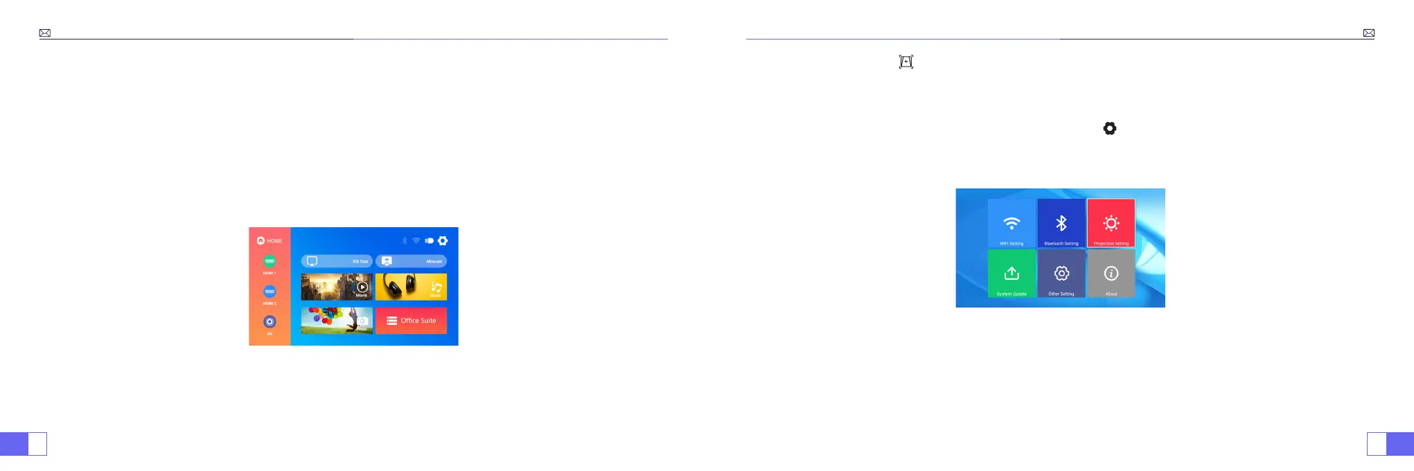 die Taste "OK" auf der Fernbedienung, um die Einstellungsoberfläche aufzurufen und "Projektionsbildeinstellung"