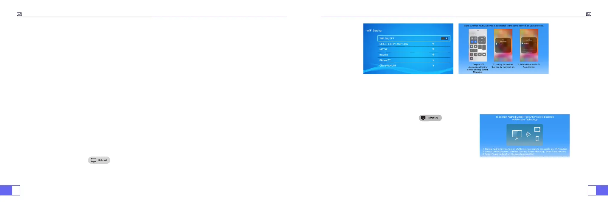 1.Accendi il proiettore, seleziona “Miracast” come