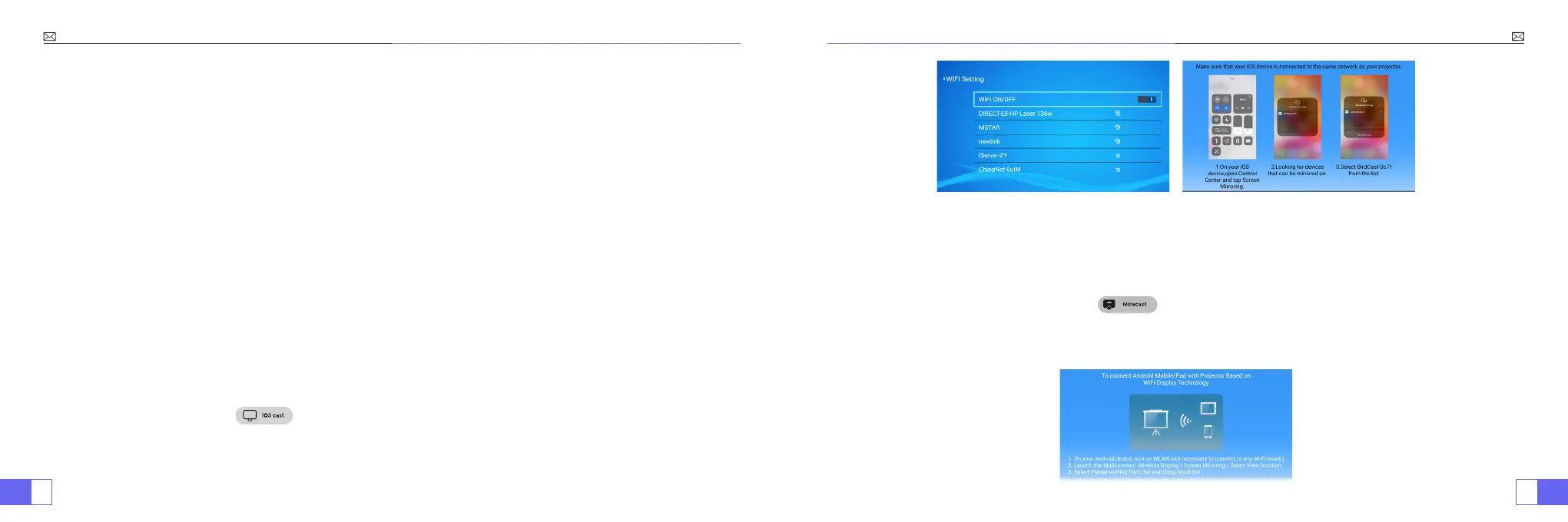 1.Encienda el proyector, seleccione “Miracast” como fuente de entrada.