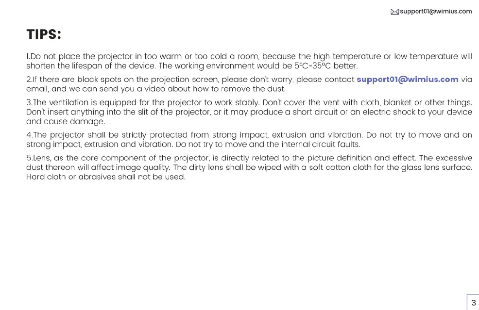 Wimius P64 - Usage Tips and Precautions; Environmental and Handling Advice; Lens Cleaning and Maintenance