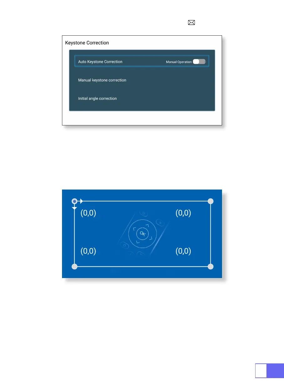 Correction]--Select [Manual Keystone Correction], press “OK” to pick the