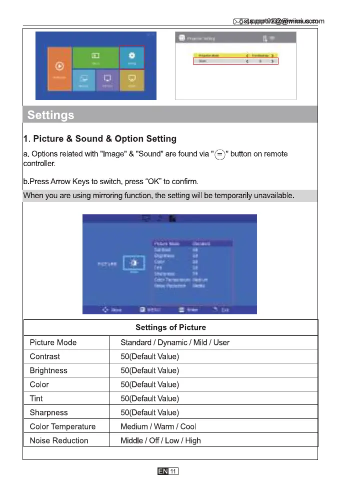 When you are using mirroring function, the setting will be temporarily unavailable.