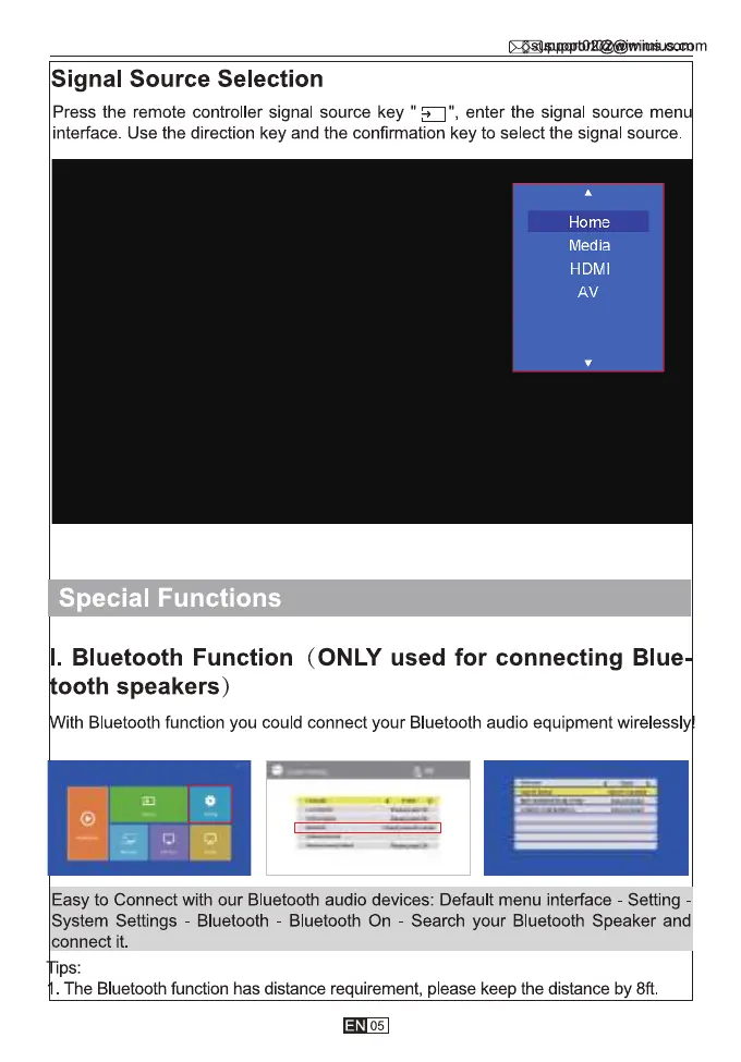 The Bluetooth function has distance requirement, please keep the distance by 8ft