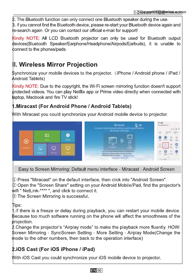 indiy NOTE: All LCD Bluetooth projector can only be used for Bluetooth output