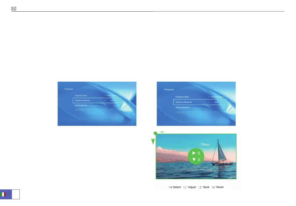 c. 4-Point keystone: regolare i quattro angoli dello schermo con i tasti freccia, nché l'immagine non diventa un