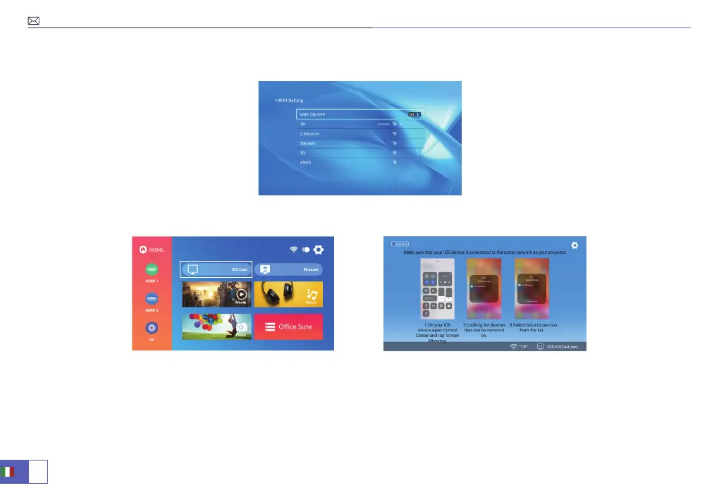 3. Il display del Suo dispositivo mobile iOS verrà proiettato sulla parete/telo tramite i dati della rete WiFi domestica