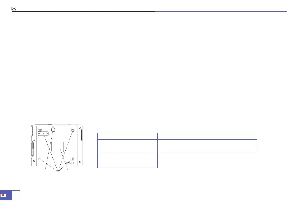 2. 天吊り取付場合は、プロジェクター天吊り金具を購入必要があります。プロジェクタの底部に 4 つの穴があることを確認し、パッ