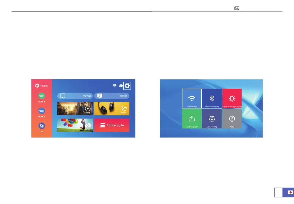 メインメニューの右上部にある“設定”を選択し、それをクリックして“WiFi 設定”を選択します。