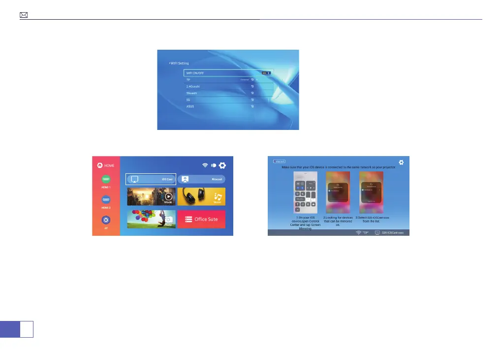 3. The display of your iOS mobile device will be projected to the wall/ screen via Home WiFi network data after a