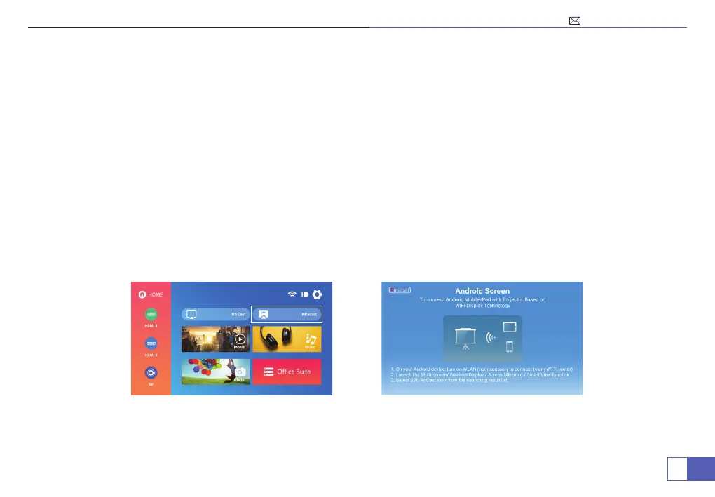 There are two methods for screen projection on Android phones. The rst is to connect the phone and the projector