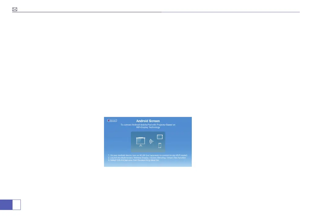 Note: If the projector was connected to the home WiFi, please disconnect it rst and then enter the “Miracast”.