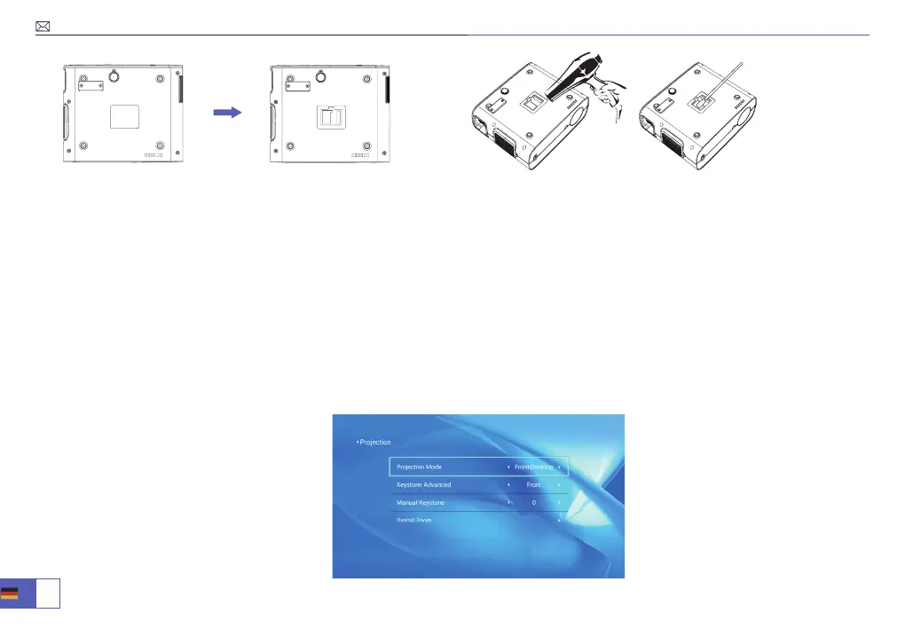 Wählen Sie Projektionsmodus, um ein Vorder- und Aufwärtsbild zu erhalten: