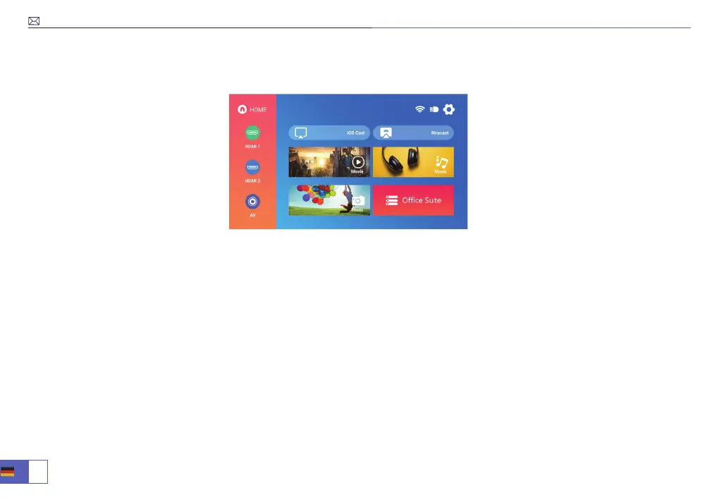 Drücken Sie das "S" Bouton der Fernbedienung oder der Projektor, um in das Signalquellenmenü zu gelangen, und