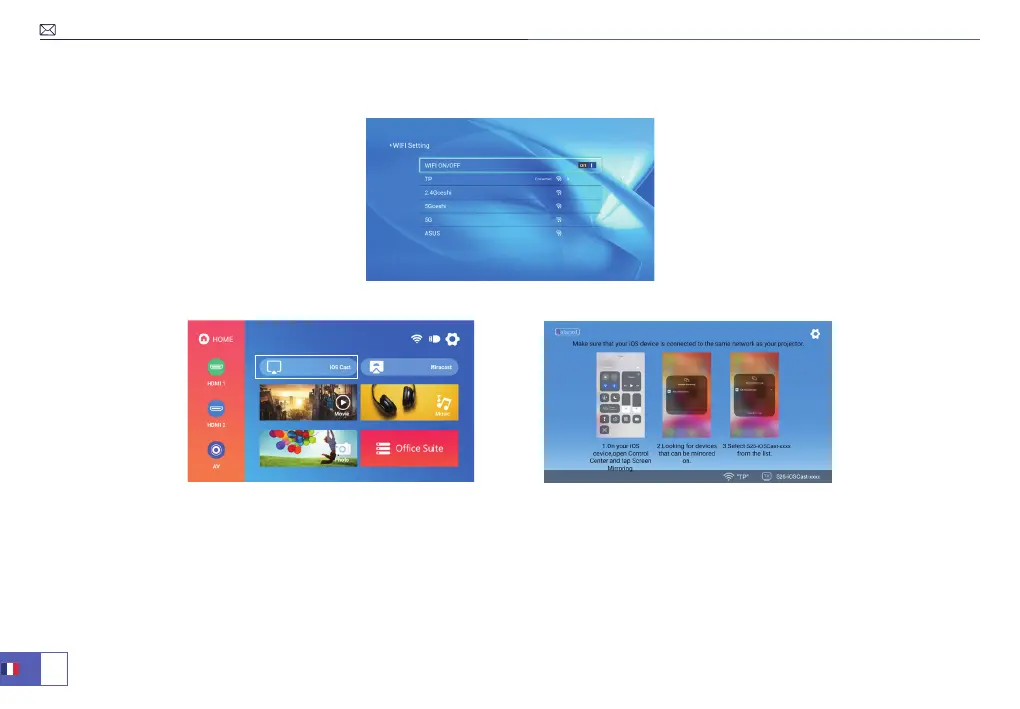 3. L'affichage de votre appareil mobile iOS sera projeté sur le mur/l'écran via les données du réseau WiFi