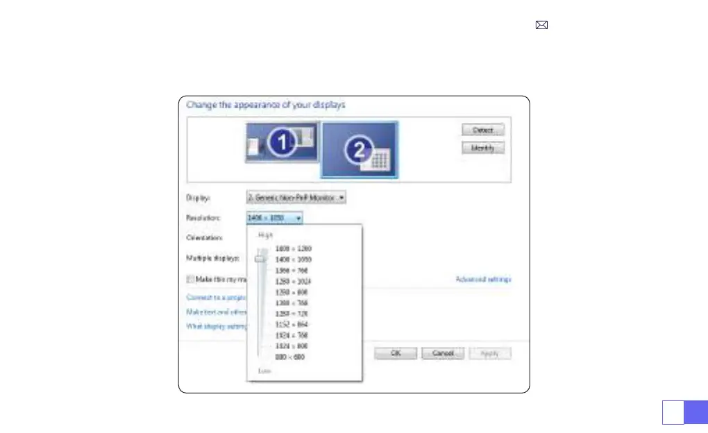 ステップスタート > コントロールパネル > 外観と個人設定 > 画面の解像度を調整する
