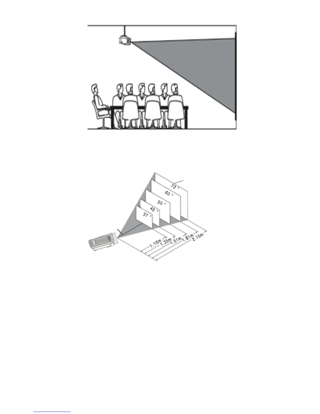 trapézoïdale, raccourcir la distance entre le projecteur et le centre de l'écran dans la