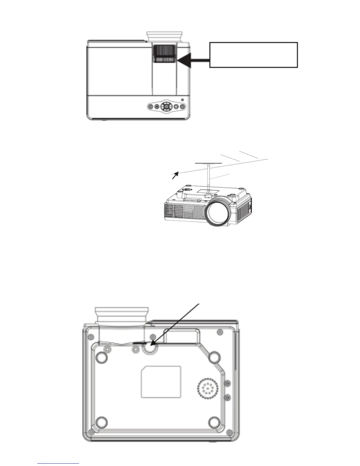 S'il vous plaît se référer à l'illustration du projecteur au plafond suivant