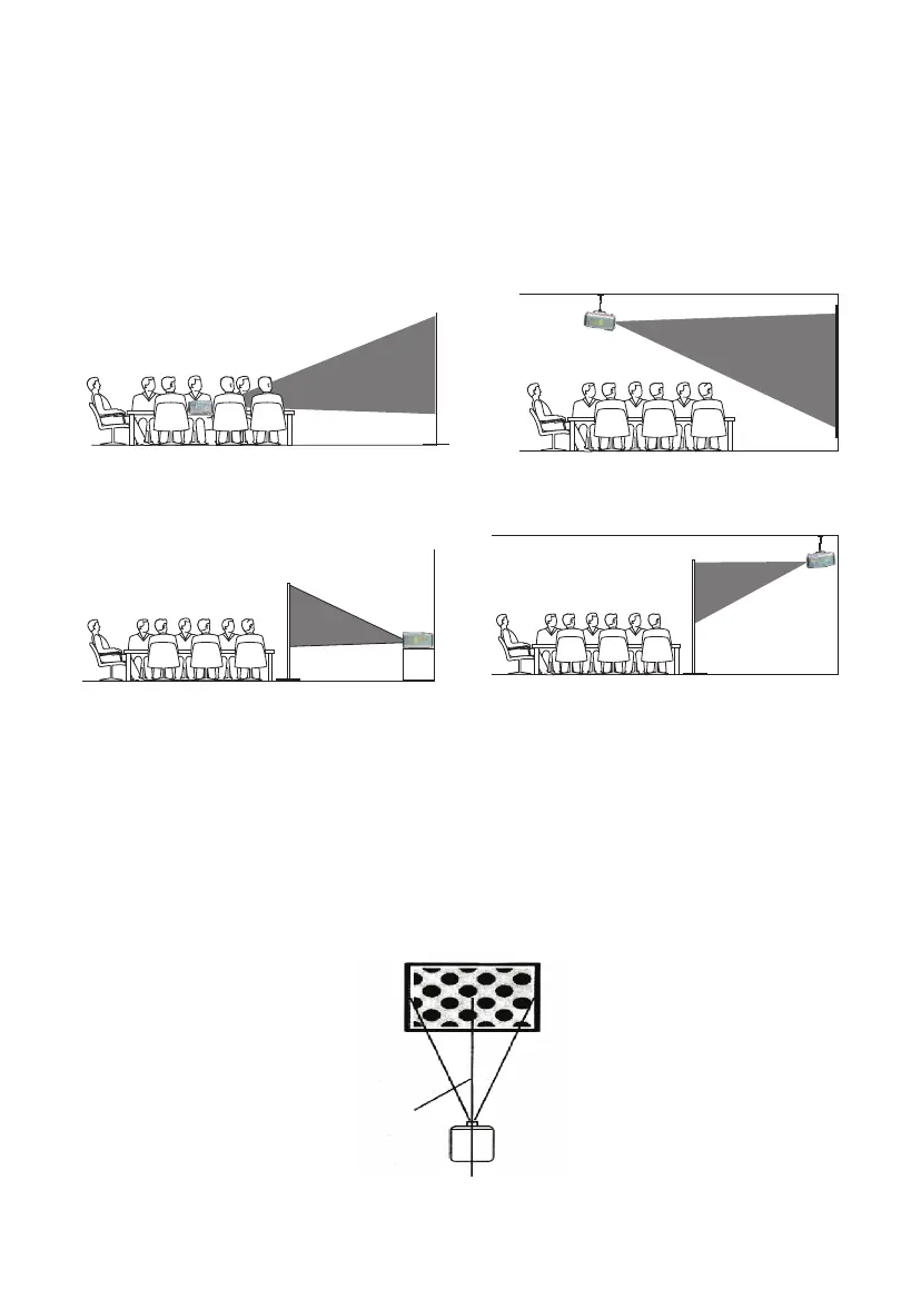 ご注意:天吊りの場合、フォーカスと台形歪み補正に影響しないよう、本体の位置を
