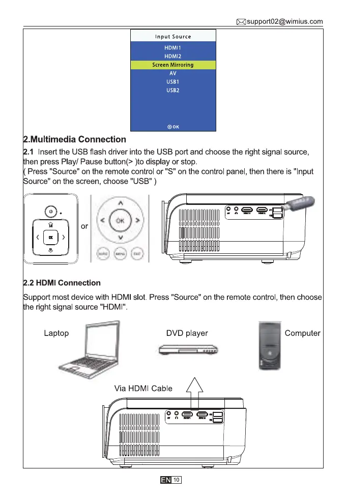 .1 Insert the USB flash driver into the USB port and choose the right signal source,