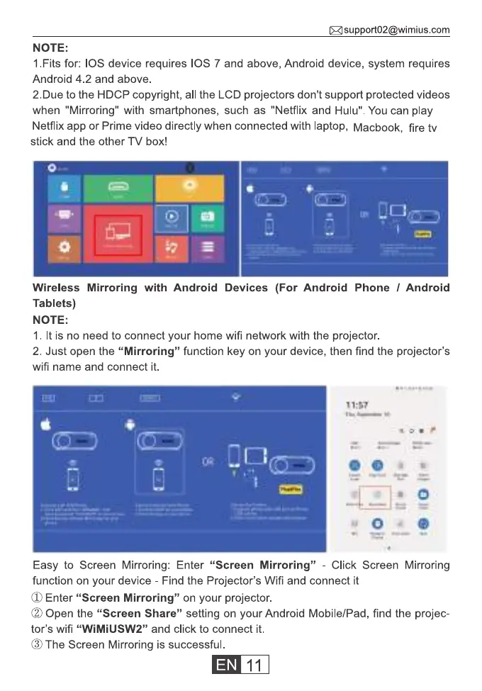 (2)Open the "Screen Share" setting on your Android Mobile/Pad, find the projec-