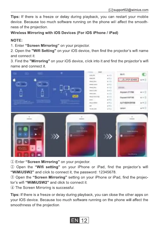 (9) Open the "Screen Mirroring" setting on your iPhone or iPad, find the projec-