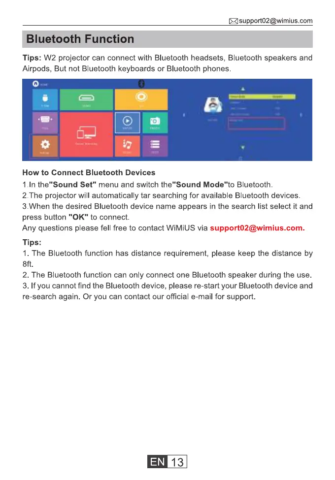 Tips: W2 projector can connect with Bluetooth headsets, Bluetooth speakers and