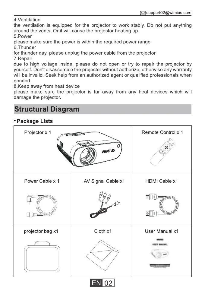 yourself. Don't disassemble the projector without authorize, otherwise any warranty