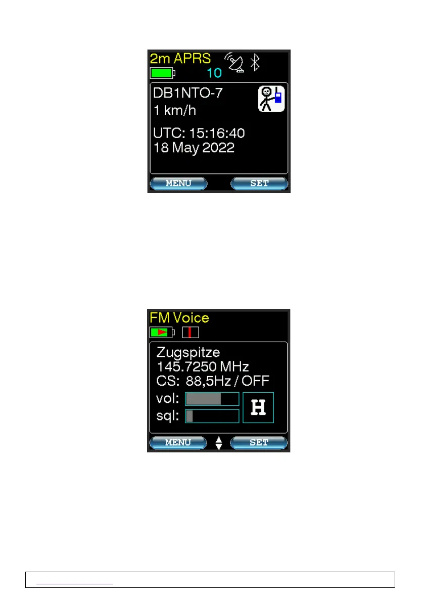 * Right button takes you to APRS settings (chapter 3.11).