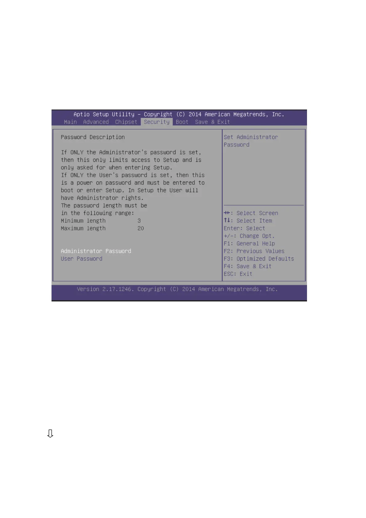 Administrator Password item on top of the screen shows the default Not Installed.