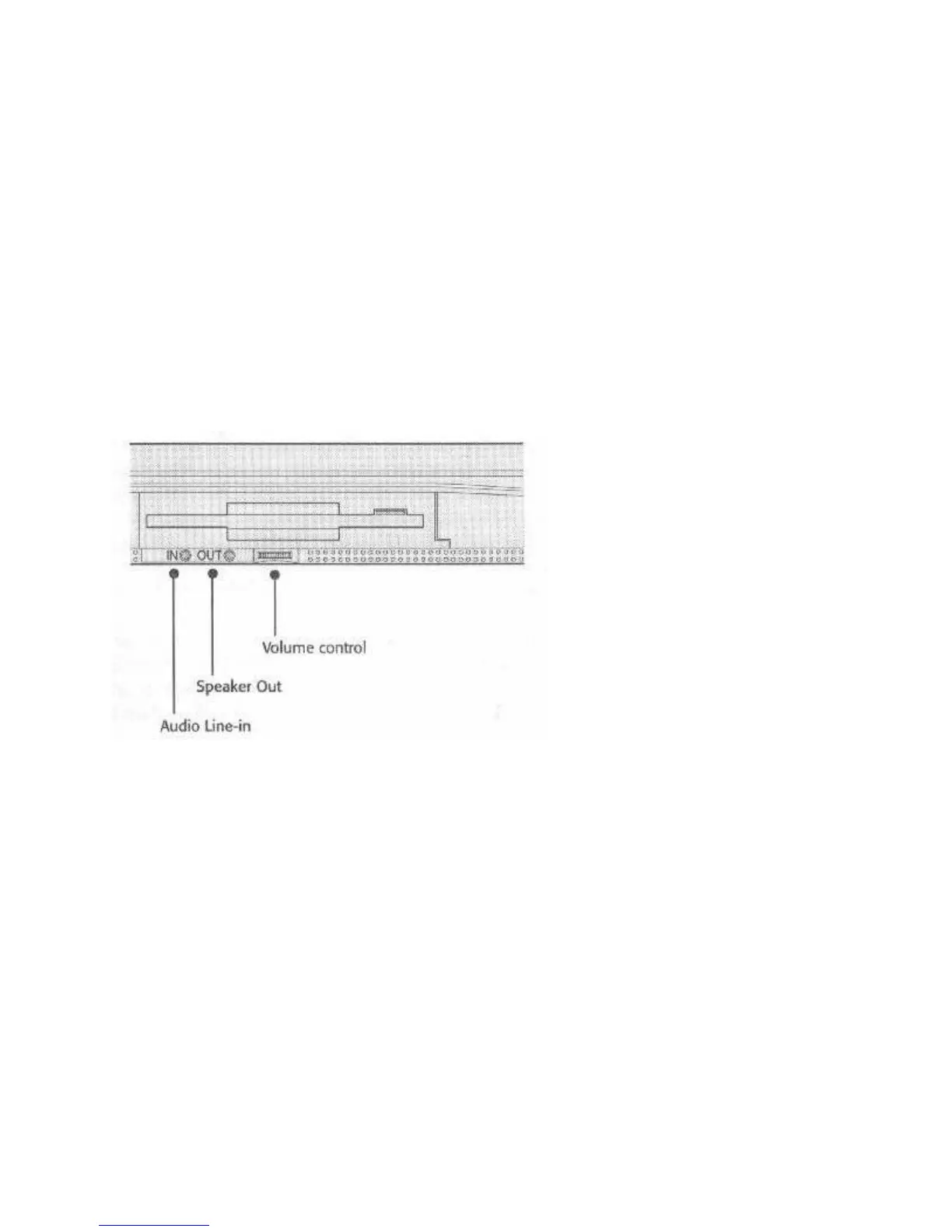 side of the computer below the floppy disk drive. You can plug any external audio source that
